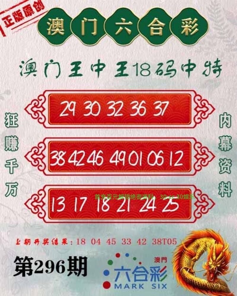 | 296期:绝杀两合❎03.06合❎开:猴22中 |